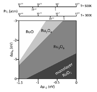 In collaboration with experiments, we have performed DFT calculations to determine the structures and activities of RuOx nanostructures formed on TiO2(110) under different oxygen chemical potentials. We used statistical thermodynamics to take into account the effect of temperature, oxygen pressure, and ruthenium concentration on the stability of the ruthenium oxides on the TiO2(110) surface. Our calculations showed that temperature and oxygen pressure had a dramatic effect on the elemental composition and morphology of the RuOx/TiO2(110) systems, and therefore the catalytic activities. The DFT-optimized structures agree well with the STM measurements. By adopting the unique nanostrucure, RuOx/TiO2(110) is able to display a higher activity than each individual toward CO oxidation and ethanol decomposition. Given that, to model a catalytic reaction under relatively high pressure, the effects of pressure on the catalyst phase, catalyst structure, binding energy of an intermediate and the kinetics of each elementary step have to be addressed, which may cause significant differences from the case under UHV conditions.