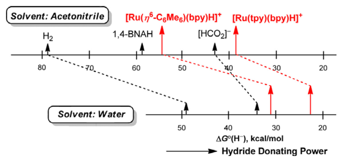 of Ru(II) hydride complexes previously studied in water. Comparison of the
