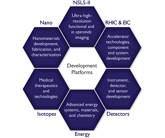 These development platforms for collaborators and entrepreneurs are based on Brookhaven Lab's core competencies in R&D and a "direct line of sight" to commercial market growth. Computational science and space radiation simulation and testing are also strong candidates for market development.