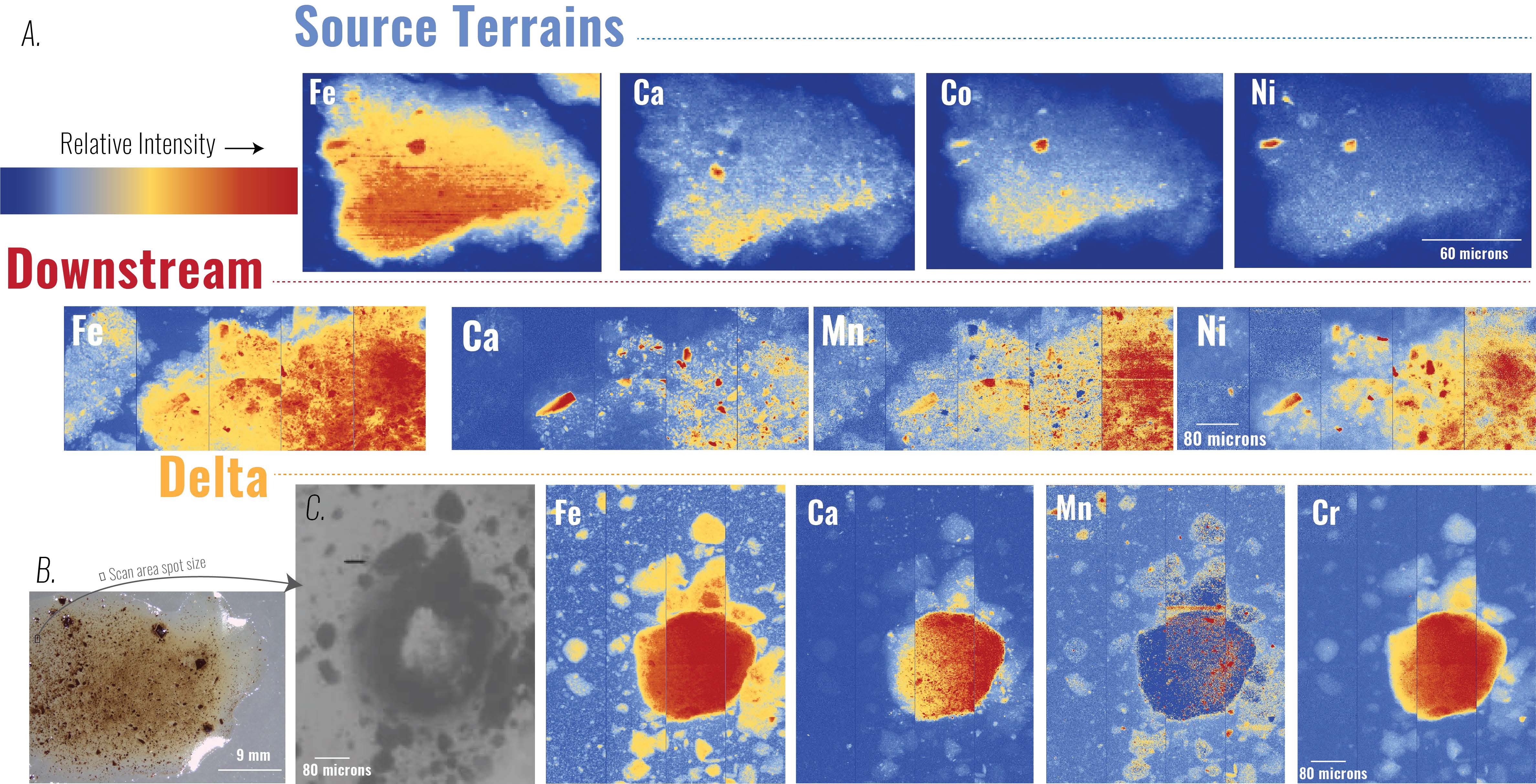 To complement these structural measurements, the team looked at the chemistry and elemental composition of the sediments using the Submicron Resolution X-ray Spectroscopy (SRX) beamline at NSLS-II. The researchers took samples from different types of terrain within the area and measured the concentration of specific elements in each sample.