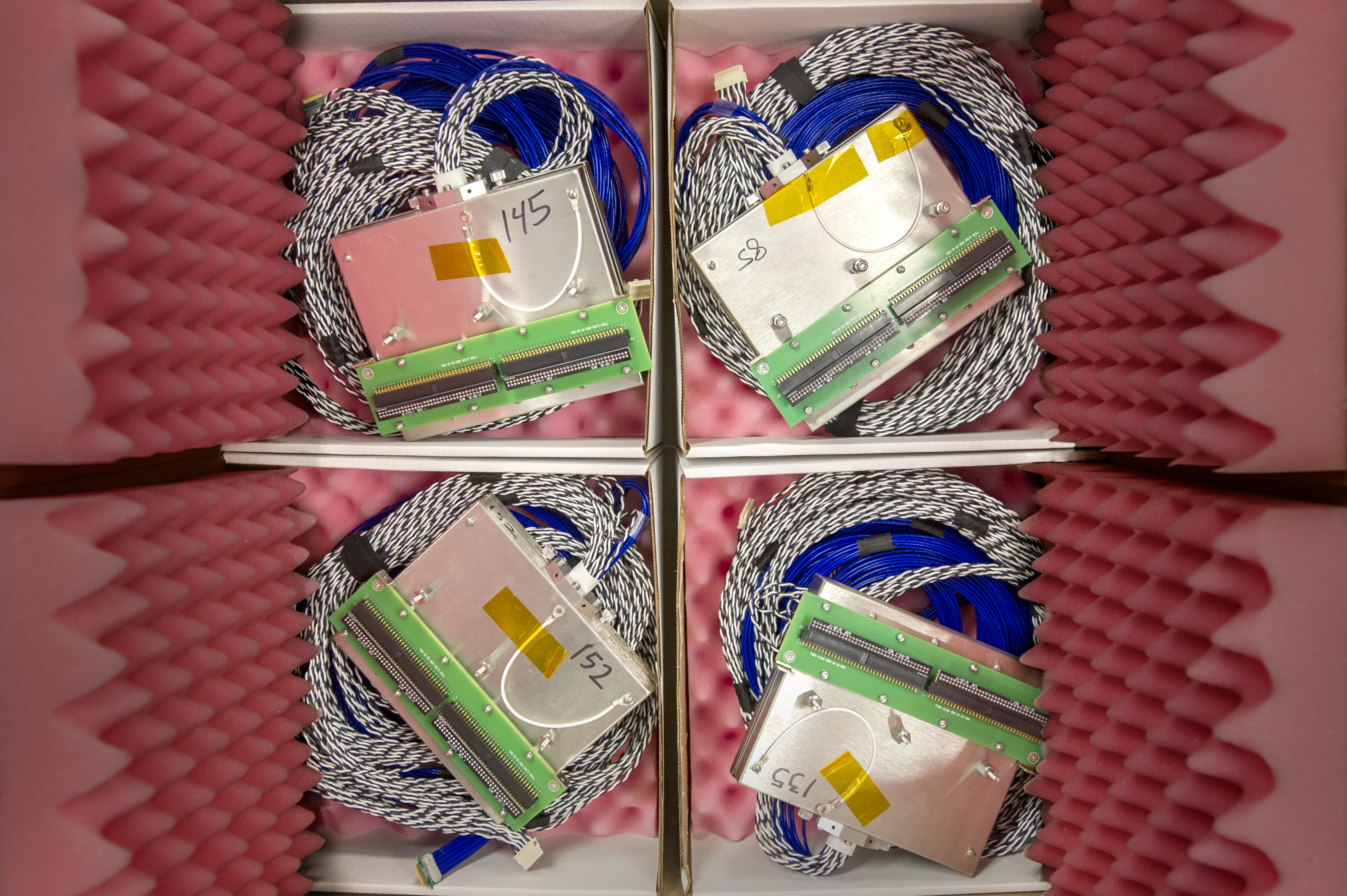 “These sit right outside the cryostat and will allow us to do some debugging on what’s going on inside the cryostat—check that channels are reading out the way they’re supposed to be, do noise checks, voltage checks, and so on,” Matt Worcester explained. “You can just plug in your laptop and run software written by our engineers that interprets the data to do a quick verification that things are working—or identify connections that need to be fixed.”