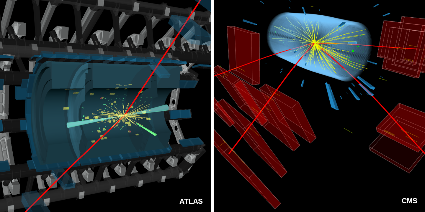 The ATLAS and CMS detectors can never see a Higgs boson directly: an ephemeral particle, it transforms (or “decays”) into lighter particles almost immediately after being produced in proton–proton collisions, and the lighter particles leave telltale signatures in the detectors. However, similar signatures may be produced by other Standard-Model processes. Scientists must therefore first identify the individual pieces that match this signature and then build up enough statistical evidence to confirm that the collisions had indeed produced Higgs bosons.