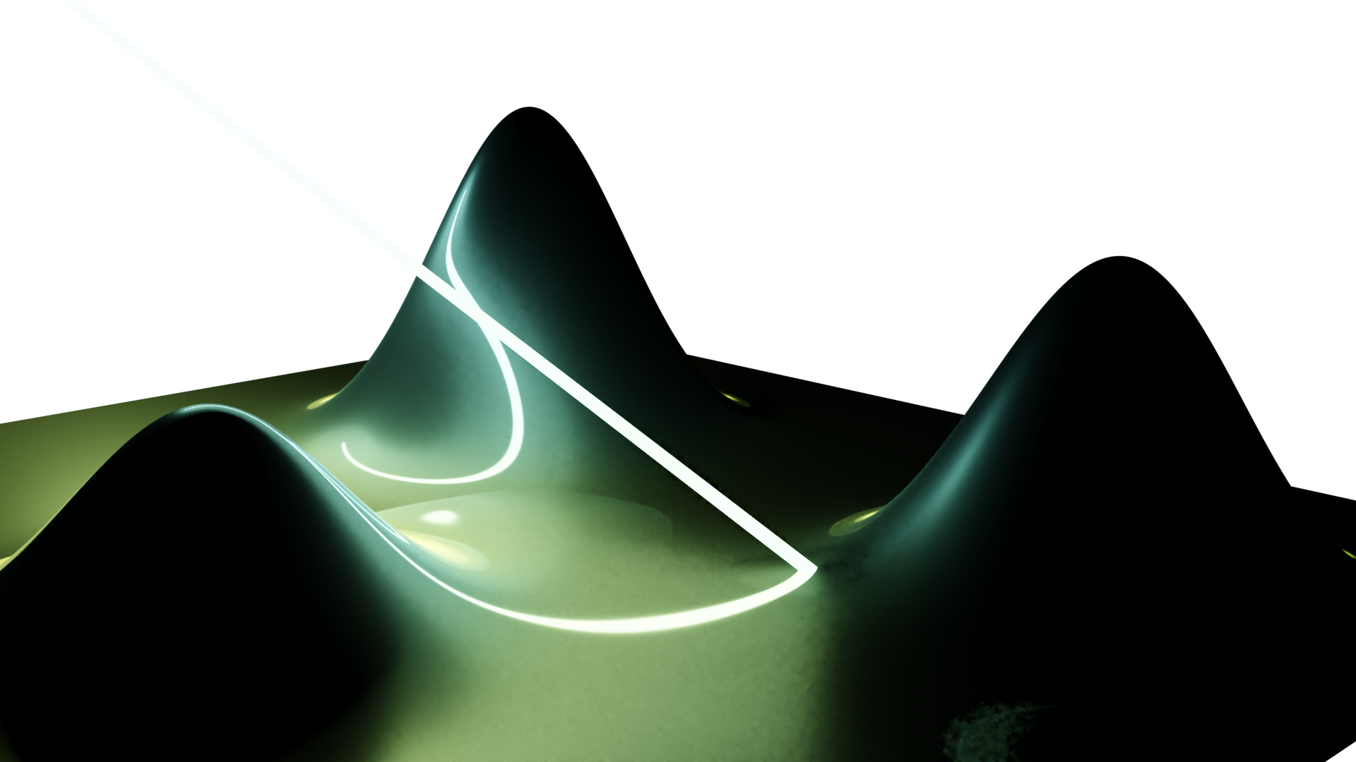 An artistic illustration of a mixture of Gaussian processes and a light or particle beam passing through. The image alludes to the inner workings of the algorithm inside gpCAM, a software tool developed by researchers at Berkeley Lab's CAMERA facility to facilitate autonomous scientific discovery. Credit: Marcus Noack, Berkeley Lab