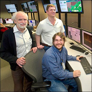 The RHIC stochastic cooling team: (from left) Mike Brennan, Mike Blaskiewicz, and Kevin Mernick (seated)