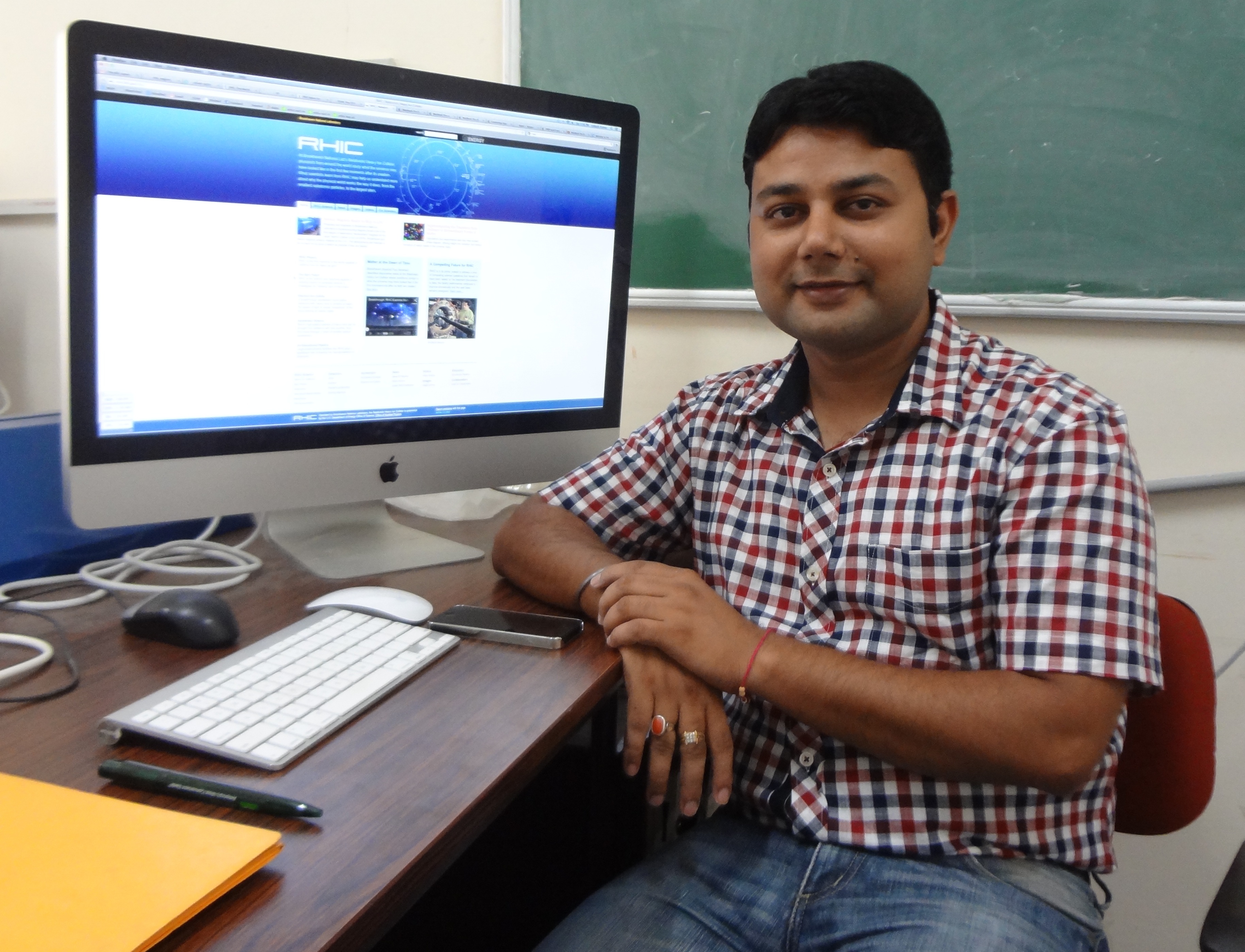 Lokesh Kumar recently joined the National Institute of Science Education and Research (NISER) in India. He is an active participant in the STAR experiment at Brookhaven National Laboratory’s Relativistic Heavy Ion Collider (RHIC) and the ALICE experiment at the Large Hadron Collider (LHC). Both experiments study the subatomic particle “debris” emerging from light-speed collisions of heavy ions to get clues about what matter was like at the dawn of time. Kumar’s training for this work began right here at Brookhaven, as a graduate student and then a postdoctoral fellow from Kent State University working at STAR.