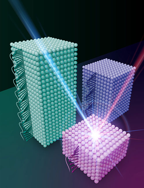 An artist's interpretation of measuring the evolution of the spin dynamics as a function of thickness using resonant inelastic x-ray scattering. Image credit: Brookhaven National Laboratory
